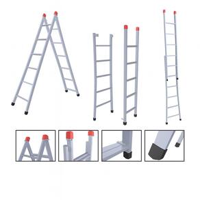 Multifuncional, pode ser utilizada como escada extensível, tipo tesoura ou separada em duas partes. Conta com sapatas de borracha antiderrapantes nos pés e terminais de proteção nas extremidades, garantindo maior firmeza e segurança durante o uso.