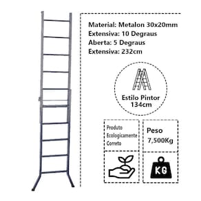 Escada Extensiva 3 em 1 Metalon 30x20mm 5 e 10 Degraus 134cm, uma escada é uma construção formada por uma série de degraus, destinada a ligar locais com diferenças de nível.