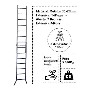 Escada Extensiva 3 em 1 Metalon 30x20mm 7 e 14 Degraus 187cm, uma escada é uma construção formada por uma série de degraus, destinada a ligar locais com diferenças de nível.