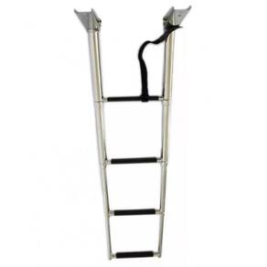 Escada 4 Degraus Compacta e de Fácil instalação, a escada com 4 degraus para embarcações é feita 100% em INOX 316 polido de alto brilho com degraus revestidos em borracha antiderrapante para dar mais segurança ao subir ou descer da embarcação A Haste de fixação ao casco possui articulação de até 270, que permite guardar a escada enquanto navega. Seus degraus são retráteis e possui cinta de segurança para prendê-los, deixando a escada super compacta para ser guardada. Características: Dimensões Máximas Aberta : 115cm x 25,4cm A x L Dimensões Mínimas Fechada : 38 x 25,4 A x L Diâmetro do tubo no degrau mais alto: 3cm Itens que Acompanham o Produto: 01 Escada em INOX com 4 Degraus; Ean: 7908777356845