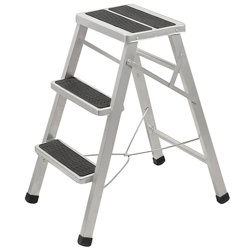 Leve, dobrável e fácil de guardar, ótima solução para alcançar lugares mais elevados no uso doméstico. Produzida em aço carbono e acabamento em pintura epóxi. Mais praticidade para os afazeres domésticos.