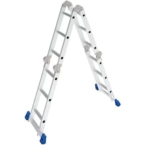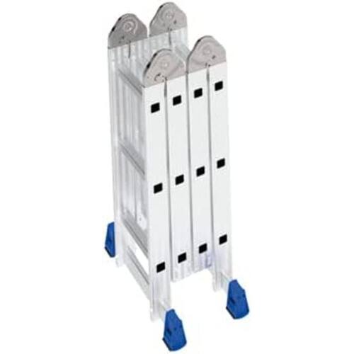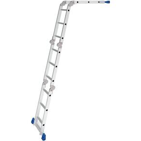 a escada multifuncional 4x3 da mor é surpreendente e oferece diversas formas de utilização para  e doméstico, possui estrutura super resistente em alumínio, dobradiças em aço com exclusiva trava de segurança e pés emborrachados que aumentam a aderência e não danificam o piso. Com 8 posições de regulagem, oferece estabilidade e segurança total durante seu uso. Possui 4 partes de 3 degraus, alcançando a altura de 3,36m quando totalmente estendida. Prática, em menos de um minuto você pode trocar a posição da escada de acordo com sua necessidade. Por ser totalmente dobrável, ao fechá-la seu volume diminui ocupando pouquíssimo espaço, facilitando seu transporte e armazenamento em qualquer lugar. Fabricada de acordo a norma europeia em-131 a escada multifuncional garante a certeza de um excelente produto. Ela suporta até 150 kg, tem catracas com excelente qualidade, travamento automático na extensão e degraus com ranhuras em todos os lados conferindo ainda mais segurança durante a sua utilização. Com 3 anos de garantia, é a versatilidade que você precisava para alcançar as superfícies mais altas e lugares de difícil acesso com muita rapidez e agilidade. Especificações