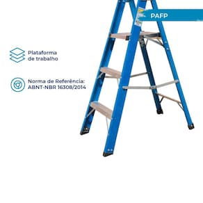 - Para uso em baixa tensão Altura do Primeiro Degrau: 30 cm Altura Entre Degraus: 30 cm Altura Máxima da Escada: 120 cm Ambiente Principal: Área de Serviço Antiferrugem: Sim Certificado: Sim Cor da Estrutura: Azul Cor dos Degraus: Cinza Cor dos Pés: Preto Degraus Antiderrapantes: Sim Degraus Divididos Em: Possui Apenas 01 Sequência de Degraus Dobrável: Sim Função: Profissional Itens Inclusos: 1 Escada Largura da Escada: 50 cm Largura do Degrau: 50 cm Linha ou Coleção: Premium Marca: WBertolo Material da Estrutura: Fibra de Vidro Material dos Pés: Borracha Número de Posições: 01 Origem do Produto: Nacional Pés Antiderrapantes: Sim Peso: 6 kg Possui Limitador de Abertura: Sim Profundidade do Degrau: 6 cm Quantidade Total de Degraus: 02 Recomendações de Uso, Manutenção e Limpeza: Orientações Gerais para Uso, Transporte e Conservação das Escadas Orientação para Uso: 1 – Utilizar as escadas sobre piso firme e nivelo, seja cuidadoso em pisos escorregadios; 2 – Não utilizar nenhum objeto para aumentar a altura da escada; 3 – Nunca use a escada como andaime; 4 – Use cinto de segurança para subir ou descer da escada enquanto tiver trabalhando; 5 – Não exceder 60 cm do topo da escada; 6 – Utilize a escada no ângulo apropriado, 75º; 7 – Verifique se as catracas estão devidamente travadas antes de subir; 8 – Observar o limite de abertura – Faça uma inspeção visual antes do uso; 9 – Para escada extensiva o deslizamento deve ser leve e suave tanto na subida, quanto na descida; 10 – Não é permito reparo nos montantes da escada; 11 – Não exceder a carga máxima total especificada para a escada; 12 – Escadas tesouras: Não pisar na plataforma sem alça de apoio e certificar de que a escada esteja totalmente aberta antes do uso; 13 – Os EPI’s a serem utilizados, deverão seguir as Normas de Segurança da empresa; 14 – Não desça ou suba as escadas de costas para ela; ORIENTAÇÃO PARA TRANSPORTE: 1 – Transporte sua escada sobre apoio de borracha ou plástico; 2 – Amarre firmemente a escada para evitar atritos e impactos; 3 – Escadas com até 4 metros poderão ser transportadas por uma pessoa, devendo ser mantida na parte dianteira. Escadas com mais de 4 metros deverão ser transportadas por duas pessoas; 4 – Tome cuidado com choques em linhas energizadas ao transportar escadas. ORIENTAÇÃO PARA MANUTENÇÃO: 1 – Reparos e manutenção nos montantes só poderão ocorrer sob orientação e após um parecer do fabricante; 2 - A escada deverá ser reparada se apresentarem quaisquer defeitos indicados a seguir: Cinta de apoio danificada ou solta; Sistema de travamento, roldana, guias, sapatas com trincas ou danificadas, mola solta ou lingüeta quebrada; Tirantes e parafusos folgados; Suporta Até (kg): 120 kg Tipo de Certificado: Certificado De Garantia e Qualidade