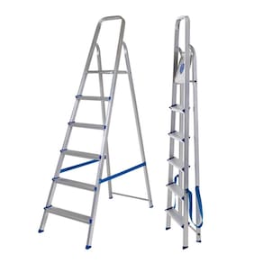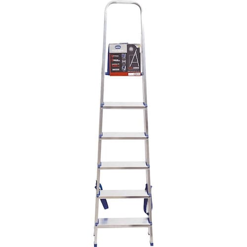 . .Para realizar consertos e manutenção doméstica com segurança é preciso ter uma escada que mantenha você firme no momento da utilização. Por isso a Mor elaborou a Escada de Alumínio 6 Degraus, ideal para pequenos reparos e para alcançar lugares mais elevados em sua casa, além de ser dobrável e fácil de guardar. Possui estrutura em tubo retangular e chapas em alumínio, material super leve, durável (mesmo em áreas litorâneas!) e peças plásticas em polipropileno de alta resistência. Além disso, seus pés antiderrapantes e travamento automático na plataforma superior garantem maior estabilidade para suportar até 120 Kg. As Escadas de alumínio Mor são fabricadas de acordo com a nova portaria do INMETRO N° 615 e 616, o que garante a certeza de um excelente produto. Possuem três anos de garantia.