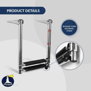 Escada telescópica retratíl em aço inox Esta escada telescópica para barco sobre plataforma marítima, 2 etapas para uso no convés e montagem na plataforma. Ideal para um acesso seguro de e para a água. Fabricado em aço inox aisi316 com alta resistência à ferrugem e corrosão, mesmo quando exposto à água do mar. Os degraus são cobertos com material de borracha preta anti-derrapante e estabilizada aos raios uv. Degraus ovais, proporcionam um ambiente mais suave e confortável do que degraus arredondados tradicionais.