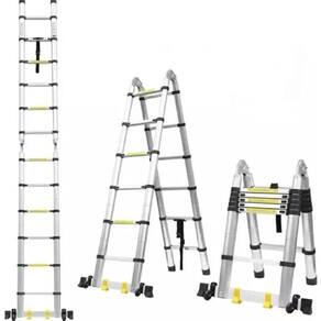 Escada Telescópica Multifuncional Alumínio 5m dupla Escada Telescópica de Alumínio 5 metros 13 Degraus suas tarefas nas alturas ficarão muito mais pratica e segura, sua estrutura é toda em alumínio e trava de segurança. - Escada telescópica alumínio - Degraus: 1/13- Altura fechada: 0,88m - Altura estendida: 5m- Uso doméstico e profissional - Material resistente - Material resistente - Fácil armazenagem - Uso prático e rápido - Uso interno e externo - Sistema de segurança com travas - Maior durabilidade - Maior leveza - Capacidade máxima 150 kg. Ficha técnicaCódigo1478728105Código de barras7901065406024Dimensões Embalagem - cm AxLxP 1 metroComposição/MaterialAluminioReferência do ModeloEscada TelescopiaModelo5 metro 13 degrausTamanho5 m Marca Nakasaki Acessei sites inacessíveis de uma forma prática. Carregá-la e adaptá-la às suas necessidades. Não há mais limites Proteja sua posição em pontos sólidos e estáveis, e comece a usá-la.