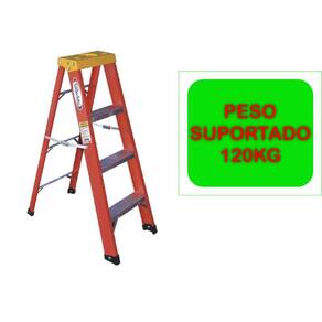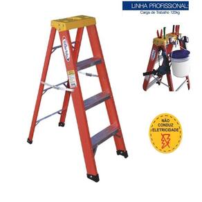 Escada Tesoura 1.2m Alumínio/Fibra 4 degraus WBertolo TAF 4 Escadas profissionais de alta performance Por não serem condutoras de energia, são ideais para trabalhos que envolvam eletricidade. De fácil manuseio, suportam carga máxima em todos os modelos de 120 kg/136 kg, com exceção da banqueta - 150 kg, e contribuem também para a segurança em atividades de telecomunicação, manutenção, pintura, trabalho em altura, instalações, dentre outras. Todas são de uso em baixa e média tensão com alto padrão de qualidade da marca que você já conhece. - Especificações Técnicas: Modelo: Profissional TAF 4 Peso: 4,50 Kg Material: Alumínio E Fibra Altura: 1,20 Metros Número De Degraus: 3 Degraus + 1 Patamar Carga Máxima De Trabalho: 120Kg As escadas Tesoura TAF são escadas em formato A, compostas por duas partes. A parte frontal possui os degraus de alumínio planos com frisos antiderrapantes. A parte traseira que serve apenas de apoio, onde não há acesso para a utilização. Essas escadas são leves, com baixa absorção de água e não condutoras de eletricidade. Ideais para uso industrial, comercial e doméstico. Fabricação São fabricadas em Perfil U em fibra de vidro por processo de pultrusão e degraus planos em alumínio com frisos antiderrapantes, proporcionando maior conforto e segurança em sua utilização. São fabricadas conforme a norma ABNT/NBR 16308. Padronização: Sapatas de borracha patamar para apoio de ferramentas limitador de abertura antibeliscão etiquetas para sua identificação. Composição Alumínio Fibra de Vidro Borracha Polipropileno Informação Carga máxima de trabalho de 120 kg Leves e duráveis Resistentes Não condutora de eletricidade Essas escadas permitem 100% de manutenção O patamar da escada não é considerado um degrau útil. Marca: Não Informado