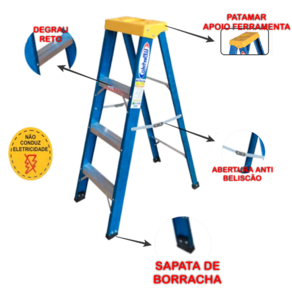 PadronizaçãoSão compostas por sapatas de borracha, patamar para apoio de ferramentas, limitador de abertura antibeliscão e etiquetas para sua identificação.