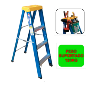 Composição Alumínio Fibra de Vidro Polipropileno Borracha Informação Carga máxima de trabalho de 120 kg Leves e duráveis Resistentes Antiferrugem Não condutoras de eletricidade Degraus tipo “D” vazados