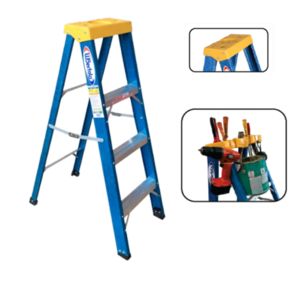 As escadas Tesoura (TAFP) são escadas em formato “A”, compostas por duas partes. A parte frontal possui os degraus planos antiderrapantes que são acessados, e a parte traseira que serve apenas de apoio, onde não há acesso para a utilização. Possuem maior durabilidade e leveza e não conduzem eletricidade, o que as tornam totalmente seguras. Fabricadas conforme a norma ABNT/NBR 16308.