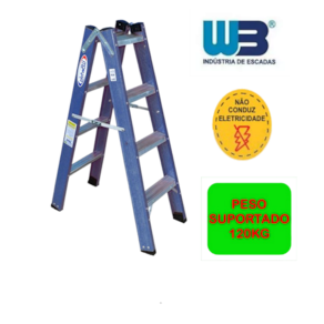 Escada Tesoura dupla 1.8m Alumínio/Fibra 4 degraus WBertolo TAFDP 4 Linha Premium
