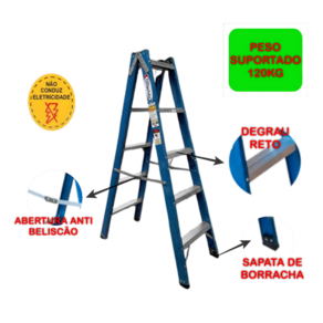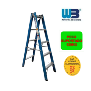 Escada Tesoura dupla 1.8m Alumínio/Fibra 5 degraus WBertolo TAFDP 5 Linha Premium