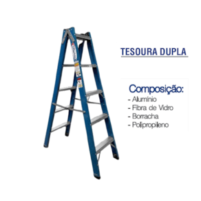 As escadas Tesouras Duplas (TAFD) são escadas compostas por duas partes e podem ser utilizadas de ambos os lados. Estas escadas são leves, com baixa absorção de água e não são condutoras de eletricidade. Fabricadas conforme a norma ABNT/NBR 16308.