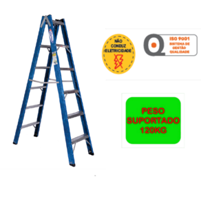 Escada Tesoura dupla 1.8m Alumínio/Fibra 6 degraus WBertolo TAFDP 6 Linha Premium