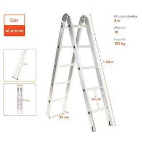 Tenha mais praticidade, segurança e versatilidade com a Escada Tesoura de 10 degraus! Ideal para uso doméstico, ela é feita em alumínio de alta resistência, o que garante leveza, durabilidade e resistência a produtos químicos.