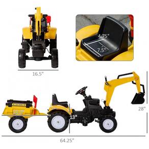 Informações sobre o Produto: Dimensões totais: 163 x 40 x 71 centímetros Dimensões do assento: 17 x 12 x 33 centímetros Capacidade de peso: 34,92 kg NOTA: Este é um modo de condução não elétrico, impulsionado pelo movimento de pedalar. Adequado para crianças de 3 a 6 anos. Este brinquedo proporciona uma experiência realista de operação de escavadeira, permitindo que as crianças brinquem e explorem enquanto desenvolvem habilidades motoras e imaginativas. A estrutura resistente e o projeto de pedalagem garantem horas de diversão segura para crianças de diferentes idades Marca: Não Informado