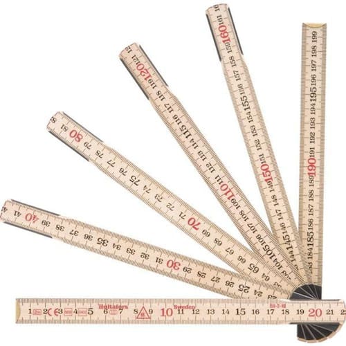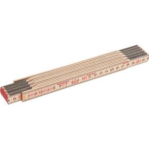 Graduação da escala : mm Comprimento da escala métrica: 1 m Tipo de marcação da escala: Pintada Espessura da escala : 2,7 mm Material da escala: Madeira Largura da escala: 17,3 mm Classe de precisão : Classe III Número de dobras da escala métrica: 6