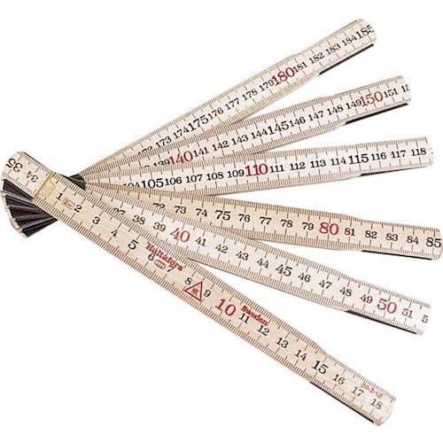Graduação da escala : mm Comprimento da escala métrica: 2 m Tipo de marcação da escala: Pintada Espessura da escala : 2,7 mm Material da escala: Madeira Largura da escala: 17,3 mm Classe de precisão : Classe III Número de dobras da escala métrica: 12