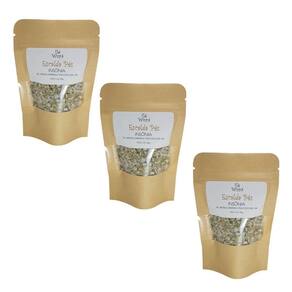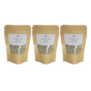 Natural, artesanal e sem corante. Composição - sal grosso, camomila, erva doce e melissa Cada sachê contém 50 g de sais com ervas e serve para 2 a 3 imersões. Embalagem - saco stand up pouch