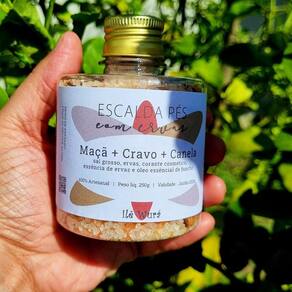 Escalda pés premium maçã, cravo, canela, óleo essencial 250g Escalda pés premium maçã, cravo, canela com óleo essencial pote 250g Natural, artesanal e fitoterápico Composição - sal grosso, corante cosmético, essência, ervas, óleo essencial Cada pote contém 250g de sais com ervas e serve até para 5 imersões. Embalagem - pote plástico com tampa dourada em rosca Escalda pés relaxante feito artesanalmente com ervas naturais, ideal para aqueles dias cansativos e estressantes. Benefícios: alivia o , melhora a circulação, reduz inchaços e revigora as energias Maçã - auxilia o , melhora a circulação e reduz inchaço Cravo - estimula a circulação e combate varizes Canela - alivia o e a tensão - melhora a circulação Óleo essencial de funcho - antiséptico e . Por se tratar de um produto artesanal, Pode ocorrer variação de aroma Modo de usar: em uma bacia grande, coloque 1,5 litro de água morna ou quente ou o suficiente para cobrir os pés e 1 colher bem cheia do escalda pés. Deixe seus pés relaxarem por 10 a 20 minutos. Marca: Não Informado