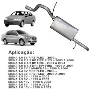 Siena 1.6 16v - 1998 a 2003 Siena 1.6 8v - 1998 a 2003 Siena 1.5 8v - 1999 a 2003 Siena 1.4 8v fire flex - 2009... Siena 1.4 8v fire flex - 2005 a 2008 Siena 1.3 16v 2002 a 2004 Siena 1.3 8v 2003 a 2004 Siena 1.0 8v fire flex - 2009... Siena 1.0 e 1.3 8v fire flex - 2005 a 2008 Siena 1.0 e 1.3 8v fire - 2001 a 2004 Siena 1.0 e 1.3 mpi 16v fire - 1998 a 2004 Siena 1.0 8v 6 marchas - 1999 a 2004