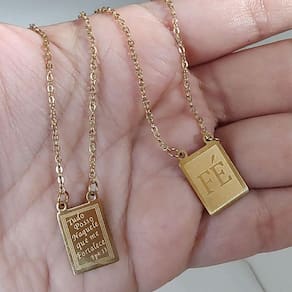 Cordão escapulário aço dourado banhado a ouro 18k fé tudo