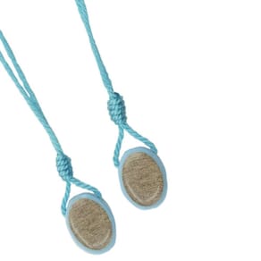 Material: Cordão, madeira e adesivo. Azul. Medida: 32 cm de comprimento.