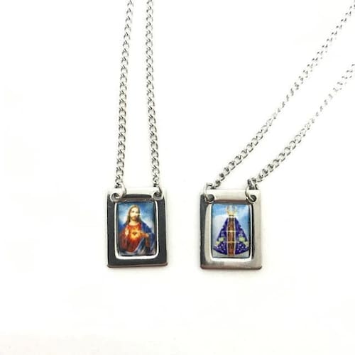Escapulário Nossa Senhora Aparecida Aço Inox Foto 1,5 X 32cm Escapulário Nossa Senhora Aparecida Aço Inox Foto 1,5 X 32 cm O escapulário é um objeto símbolo da religião cristã católica, que consiste em duas imagens, uma do Sagrado Coração de Jesus Cristo e outra de Nossa Senhora, e possui o significado de proteção física e espiritual. Muito lindo e de ótima qualidade Presenteie alguém querido com os nossos produtos Marca: Não Informado
