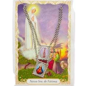 Escapulário Nossa Senhora de Fátima Aço Inox Foto 1,5 x 32cm O escapulário é um objeto símbolo da religião cristã católica, que consiste em duas imagens, uma do Sagrado Coração de Jesus Cristo e outro de São Sebastião, e possui o significado de proteção física e espiritual. Muito lindo e de ótima qualidade