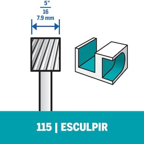 Faça esculturas de forma simplificada e com riqueza de detalhes com o Escareador para gravar de ponta quadrada de 7,9mm (Modelo 115). Ideal para aplicação em madeira, metal, couro, plástico, E.V.A e papelão.Dremel 115 Escareador Para Esculpir De Ponta Quadrada De 7,9mm.