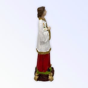 Fabricada pela Bialluz Presentes, a escultura possui dimensões compactas, com 14 cm de altura, 3,5 cm de comprimento e 4,5 cm de largura, tornando-a ideal para prateleiras, mesas ou altares. Seu peso de 191 gramas garante estabilidade, enquanto a base proporciona um suporte seguro.