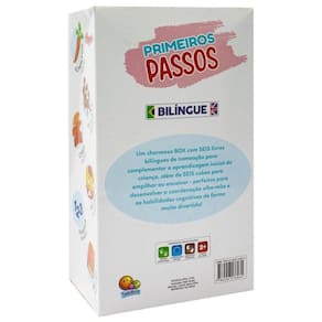 Um charmoso BOX com SEIS livros bilíngues de nomeação para complementar a aprendizagem inicial da criança, além de SEIS cubos para empilhar ou encaixar - perfeitos para desenvolver a coordenação olho-mão e as habilidades cognitivas de forma muito divertida. Marca: TODOLIVRO*