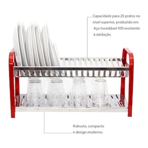 Escorredor 20 pratos Inox com Porta Talheres Cor: Vermelho Escorredor 20 pratos Inox Preto com Porta Talheres.