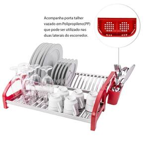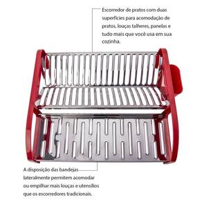 Escorredor 20 Pratos Inox Vermelho - Prático e Moderno