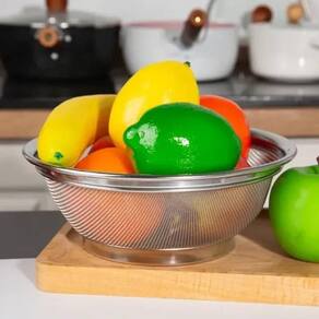 Escorredor 22cm em Aço Inox Cesto Legumes Verduras Frutas Escorredor 22cm em Aço Inox Cesto Legumes Verduras Frutas ===================================== Ideal para armazenar, organizar e apresentar uma grande variedade de alimentos, como frutas, pães, legumes, verduras, snacks e muito mais.