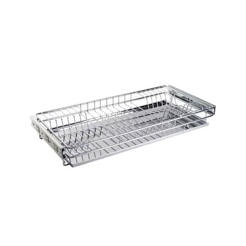 Detalhe Técnico: Espessura do arame: Estrutura em arame aço carbono 6,00mm; Acessórios: Corrediças telescópicas de 250 mm zincadas já montadas no aramado, 1 bandeja em aço inox 430 e kit de parafusos para fixação no móvel; Capacidade: 12 pratos; Medidas: L: 570 x A: 75 x P: 270mm.