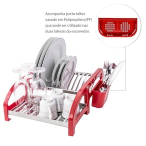 Escorredor cama 12 pratos inox vermelho com porta talheres Cor: vermelho Escorredor cama 12 pratos inox vermelho com porta talheres