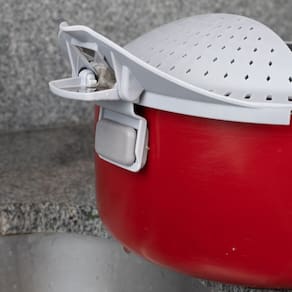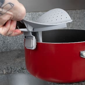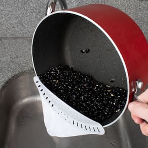Extremamente prático, este utensílio deixa sua cozinha mais funcional, pois é utilizado para escorrer alimentos diretamente do recipiente que o alimento foi preparado. Com garras que ficam fixas a borda de sua panela ou sua vasilha para escorrer a água do alimento cozido.