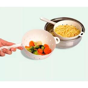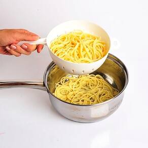 O Escorredor para massas é pequeno, em formato redondo, escorre com facilidade qualquer alimento e cabe no seu armário.