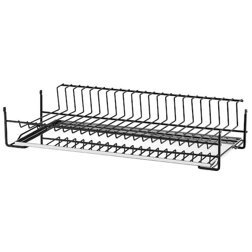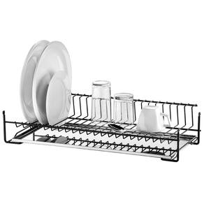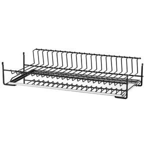 Garantia: 90 dias / Peso: 1,894kg / Cor predominante: preto / Referência: 7898187745233 Dimensões: 77cm (C) x 26cm (L) x 12cm (A); Distância entre as hastes: 2cm; Capacidade: 29 pratos; Lugar de colocação: aéreo, sobre a pia ou bancada; Quantidade de andares: 1; Materiais: aço pintado e aço inox; Acompanha bandeja em aço inox.