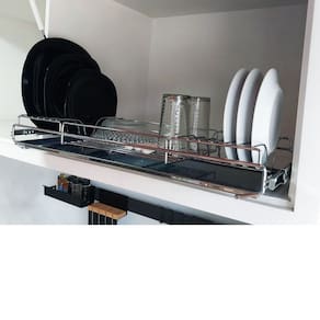 Feito em arame cromado, esse escorredor é resistente e durável, além de conferir um toque moderno e elegante para a sua cozinha. Sua estrutura permite que ele seja facilmente instalado no armário, sem a necessidade de furar a parede ou a bancada.