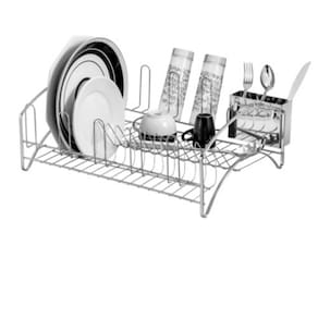 Escorredor de louças fabricado em aço cromado, material conhecido por sua durabilidade e resistência.