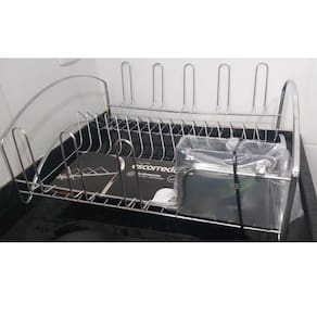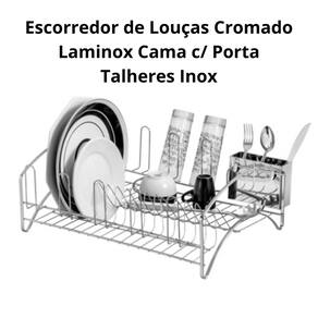 MODELO PRATA - ESCORREDOR CROMADO COM PORTA TALHERES PRATA INOX
