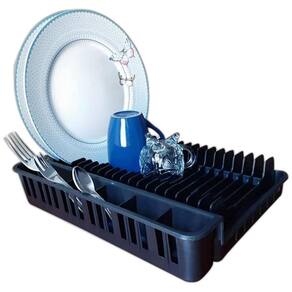 Especificações técnicas: - marca: policorda - linha: premium - modelo: dobrável - material: polipropileno virgem com anti uv - tamanho escorredor fechado : 35 cm x 27 cm - tamanho escorredor aberto : 48 cm x 35 cm - altura: 7 cm - quantidade de cavidades para os talheres: 6 - espaço para panelas e pratos: sim - capacidade de pratos: 19 - contém orifícios na bandeja e no escorredor dos talheres para o escoamento da água - cor: preto, branco, offwhite e vermelho - conteúdo: 1 escorredor de louça Marca: Não Informado