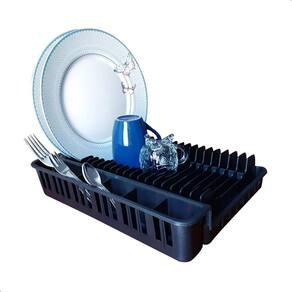 Especificações técnicas: - marca: policorda - linha: premium - modelo: dobrável - material: polipropileno virgem com anti uv - tamanho escorredor fechado : 35 cm x 27 cm - tamanho escorredor aberto : 48 cm x 35 cm - altura: 7 cm - quantidade de cavidades para os talheres: 6 - espaço para panelas e pratos: sim - capacidade de pratos: 19 - contém orifícios na bandeja e no escorredor dos talheres para o escoamento da água - cor: preto, branco, offwhite e vermelho - conteúdo: 1 escorredor de louça Marca: Não Informado Ean: 7796875520745
