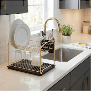 O Escorredor de Louças conta com uma estrutura em aço piatina (aço em formato achatado) que proporciona design diferenciado e traz beleza para cozinha. Possui 2 andares o que garante mais espaço para armazenar as louças, além de possuir porta talheres removível, com a bandeja que evita respingos indesejados auxilia na limpeza.