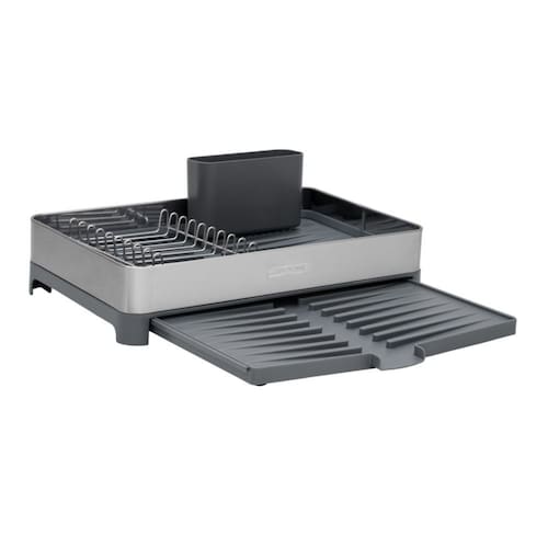 Nos dias em que o tempo é curto, o Escorredor de Louça Tramontina Plurale em aço inox e polipropileno com porta-talheres grafite garante praticidade e organização na sua cozinha. Compacto, mas eficiente, acomoda até 9 pratos, copos e talheres, com porta-copos expansível para otimizar o espaço. O porta-talheres em polipropileno se encaixa perfeitamente, enquanto as alças proporcionam segurança no manuseio. Seu design inclinado direciona a água para a bandeja coletora, que a leva direto para a pia, mantendo tudo seco e em ordem. Uma solução indispensável para rotinas corridas!