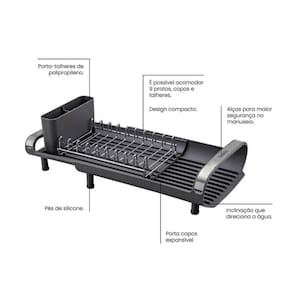 Ideal para cozinhas pequenas onde há pouco espaço na és de silicone, não escorrega nem arranha as superfí de polipropileno, com encaixe no corpo do escorredor.Capacidade: é possível acomodar 9 pratos, copos e copos expansíças para maior no õe de uma inclinação que direciona a água que escorre da louça na bandeja coletora, fazendo com que ela caia de modo direto na pia, deixando seu ambiente sempre seco e limpo.