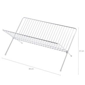 Garantia: 1 ano / Peso: 915kg / Cor: Cromado / Ref: 31165 Dimensões: 40cm (C) x 2cm (L) x 31cm (A) Cuidados: Não lavar com materiais abrasivos Capacidade: 24 pratos