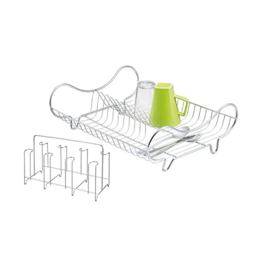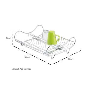 Contêm: 1 Escorredor de Pratos Dimensão: 46 x 35 x 15 cm 1 Suporte para 8 Copos Dimensão: 27,5 x 18,2 x 12 cm Material: Aço cromado